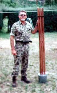 Ed v. Maltitz in voller Tarnkleidung und mit seinem CB-Funkgerät