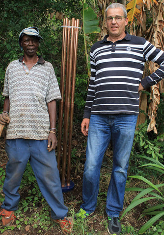 Und hier kommt es: Prophet hämmert eine Orgonit-Erdnadel ein.