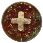 Das Muti ist in ein kleineres, mit Blattgold überzogenes Kreuz aus feinem Orgonit eingebettet, um ein „Ausbluten“ ätherischer Öle und anderer Substanzen zu verhindern, die in der Kräuterzusammensetzung des Muti enthalten sind.
