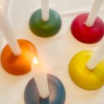 El portavelas de orgonita está disponible en 5 colores vivos.